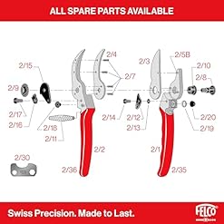 Falco Original Pruner With 1 Inch Cutting Capacity 8.25in Solid forged metal alloy handles. Replaceable cutting blade. Anvil blade with a sap groove. A hardened bolt and nut to assure exact adjustment of both the cutting and anvil blades. Rubber cushion and shock absorber. Compatible products with FELCO 2: FELCO 902, FELCO 903, FELCO 910, FELCO 910+, FELCO 912, FELCO 980, FELCO 990.