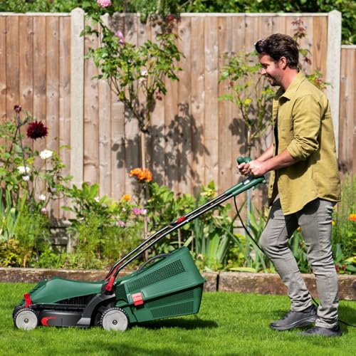 Bosch Corded Lawn Mower, Cutting Width: 37 cm, Cut Height 25-70mm, Compact Storage and Energy Efficient Motor (UniversalRotak 37-555 Corded)
