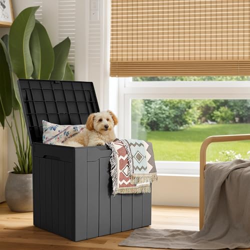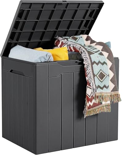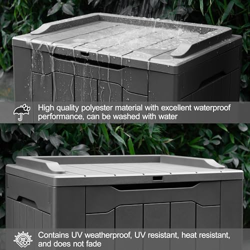 Outdoor Storage box 106L Delivery Box Waterproof Large Toy Box Decoration Storage Woodgrain Garden Bench Seat Deck Box Patio Balcony Shed Lockable Lid (Gray)
